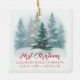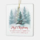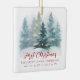Celebrate the enchanting magic of your baby's very first holiday season with this beautiful First Christmas Baby Name Snowy Woodland Photo Ceramic Ornament! This elegant square ornament captures the serene beauty of winter, featuring a delicate watercolor pine forest with soft snow falling down on the front. Your baby's name is beautifully showcased in elegant calligraphy, accompanied by their important birth stats (date, weight, length, time), creating a truly personalised keepsake.