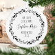 This design features a black and white wreath of Christmas ornaments, holly berries and foliage, surrounding the words "My First Christmas" in whimsical black printing font. Customise the front with baby's name in handwriting script, along with the family name and year. Easily replace the sample photo on the reverse side with a favourite square photo of the new baby. (A light background works best with the black and white wreath, or delete the wreath if you prefer.)