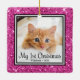 This lovely Kitten's 1st Christmas 2 photo ornament with a pink glitter edge, the words "My 1st Christmas", your kitty's photos and name and the year will look beautiful on your tree. You'll cherish it and enjoy taking it out every year to put on your tree.