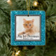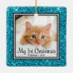 This lovely Kitten's 1st Christmas 2 photo ornament with an aqua glitter edge, the words "My 1st Christmas", your kitty's photos and name and the year will look beautiful on your tree. You'll cherish it and enjoy taking it out every year to put on your tree.