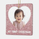 "Celebrate your little one’s first holiday season with this First Christmas Custom Baby Photo Glitter Ornament. Featuring a sparkling pink glitter background and a heart-shaped photo frame, this ornament beautifully showcases your baby’s photo in a sweet and festive design. Personalize it with your child’s name, year, or special message to create a treasured keepsake that captures the joy of their very first Christmas. Perfect for hanging on your tree or gifting to new parents and grandparents, this durable and lightweight ornament adds a touch of sparkle, love, and holiday magic to your décor."