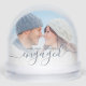 First Christmas Engaged 2 Photo Dusty Blue Script Snowglobe