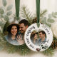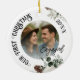 Celebrate love and new beginnings with this personalised "Our First Christmas Engaged" photo ornament. Designed in a timeless round ceramic style, this keepsake features elegant calligraphy, festive winter greenery, pinecones, and white florals. The front displays a custom engagement photo with the phrase “Our First Christmas Engaged” with the year, while the back offers space for a second photo and the couple’s names, making it a truly meaningful and unique holiday treasure. Perfect as an engagement gift, Christmas proposal keepsake, or holiday décor for couples, this ornament is a heartfelt way to commemorate your engagement and the start of forever.