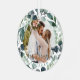 Watercolor green foliage eucalyptus greenery leaves wreath and a classy trendy handwritten style calligraphy script making a beautiful modern engagement photo personalised keepsake Christmas tree ornament template. ++++++++++++ Easy to replace the photo with your own! You can change the script text with yours.