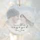 Commemorate your engagement with this beautiful modern keepsake ornament. The dark green text reads "Our first Christmas engaged," with the word "engaged" in elegant script with swashes before and after. Replace the sample image with your favourite photo, and add your names and the year. A white gradient filter helps make the text pop.