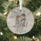 First Christmas Engaged Custom Photo Green Script Glass Tree Decoration