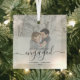 First Christmas Engaged Custom Photo Grey Script Glass Tree Decoration