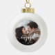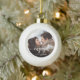 First Christmas Engaged Custom Photo White Script Ceramic Ball Christmas Ornament