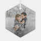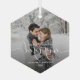 First Christmas Engaged Custom Photo White Script Glass Tree Decoration
