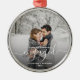 First Christmas Engaged Custom Photo White Script Metal Tree Decoration