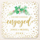 First Christmas Engaged Gold Script Holly Monogram Square Paper Coaster