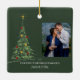 First Christmas Engaged | Minimal Engagement Photo Ceramic Ornament