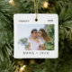 First Christmas Engaged Modern Minimalist Photo Ceramic Ornament