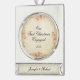 Special commemorative ornament features vintage old fashioned roses border on a cream coloured background. Text reads "Our first Christmas engaged" and you update the year. The bottom banner is where you add your names. Available in a silver or gold finish.