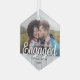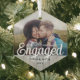 First Christmas Engaged Photo Faux Wood Hexagon Glass Tree Decoration
