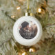 First Christmas Engaged Photo White Script Ceramic Ball Christmas Ornament