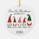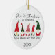 This adorable ceramic ornament is the perfect keepsake for your first Christmas as a family of five and a great gift idea for new parents. A personalized holiday accent featuring five cute Scandinavian Christmas gnomes in festive red and green. Each gnome can be customized with the family member’s name, and the year at the bottom for a lasting family keepsake. A perfect holiday gift for new parents, baby's first christmas, or friends welcoming a new baby. A charming addition to any Christmas tree and a treasured family memory for years to come.