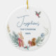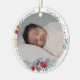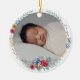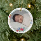 Celebrate your little one's first Christmas with this charming Woodland Animal Baby Photo Ceramic Ornament. The front features delicate watercolor flowers that beautifully frame your baby’s photo. On the back, you'll find an adorable bunny and squirrel, along with customisable text where you can add your baby’s name.