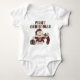 Baby girl first Christmas tote bag, T-shirt, and other holiday items with colourful text and an adorable baby dressed up like Santa Claus!