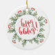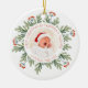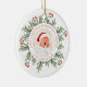 First Christmas as grandma and grandpa is a special time to be celebrated and this lovely keepsake, with their new baby grandchild's photo will be treasured and a wonderful memory to hang on their tree in Christmasses to come! On each side is a Christmassy border of festive green foliage and red berries. On the front, simply replace the sample photo in the middle with that of your own baby. You can easily personalise the text with your son or daughter's name and the year curved beneath the photo, and First Christmas as Grandma and Grandpa is curved at the top, but this can be easily changed to granny and grandad, nanny and gramps, or whatever you wish. On the other side, Happy Holidays is in a set elegant script red typography with the same leafy border.