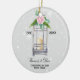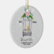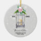 Featuring a pale grey snowy background with a watercolor candle lantern topped by a pink rose, holly, and pine branches, this Christmas ornament matches our Home For the Holidays collection. This ceramic keepsake ornament is perfect for newlyweds or a couple celebrating their first Christmas together in a new home or apartment! You can change the background colour to pink or any that matches your preferred colour scheme. The back features a gingham plaid in black but 3 COLORS OF PLAID FOR THE BACK ARE IN THE DESIGN (black as shown, dark green, or pink - just edit and hide the plaid image you don't want).