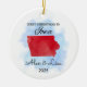 A Personalised Iowa State Ornament used for Christmas occasion to celebrate the first Christmas living together as a either as a couple, family or newlyweds in the United States of America.