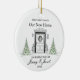 Commemorate the joy of a fresh beginning with this personalised new home ornament—the perfect way to celebrate your first Christmas in your new home. Featuring a charming front door design with festive trees and wreath, this keepsake can be customised with your family name, year, and address to create a truly one-of-a-kind holiday treasure.