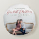 This festive holiday pillow features "our first Christmas in our new home" typography with pretty red script. Your new street address is included with the personalised year, along with your customised photo! A beautiful holiday gift! Shop this store for coordinating ornaments.