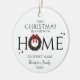 Mark the magic of your first Christmas in a new home with this elegant, round, white ceramic Christmas ornament featuring a wreath with a red bow. Personalise it with your address, family or couple's name, and the year to create a festive keepsake you’ll treasure for years. A thoughtful housewarming gift or memory for your first Holiday season in a new place. Double-sided.