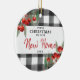First Christmas In Our New Home Personalised Plaid Ceramic Ornament. Personalise with your custom information on both front and back.
