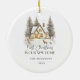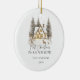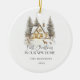 Celebrate the magic of your first Christmas in your new home with this beautifully designed ceramic ornament featuring a cozy winter view.
