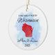 A Personalised Wisconsin State Ornament used for Christmas occasion to celebrate the first Christmas living together as a either as a couple, family or newlyweds in the United States of America.