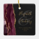 First Christmas Married Burgundy Agate Gold Script Ceramic Ornament