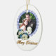 First Christmas Married ornament. Customisable, add your image and change the date on the back if necessary. Blue ornaments and white poinsettias with gold 3D text, "Merry Christmas".