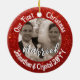 Red glitter (not real) Christmas ornament for newlyweds. Personalise with the couple's names, photo and year.