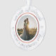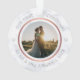 This personalised Christmas ornament features a modern faux rose gold design on a faux marble background. Personalise the name, year and wedding photo. It is double sided. This template works best with a landscape format photo with the couple in the centre.