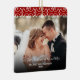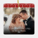 Customise this elegant first Christmas as a newly-married couple Christmas ornament with two of your own wedding or newlywed photos placed upon a banner with elegant navy swirls and a red background. Includes the statement, "Our First Christmas as Mr. and Mrs.", your married names, and the year on each side. Easy to customise with your own photos, and you can also change the background colour by clicking on "Customise further" in the "Personalise Template" breakout box. Start a new tradition to create your family's own personal ornament each Christmas. A wonderful gift to give to parents, grandparents, or to keep for yourself. Also available in other styles.
