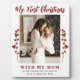 Baby's first Christmas with mum unique keepsake plaque with red berries branches, your custom photo and red modern typography script text. +++++++++ Can be a beautiful gift for a new mother.