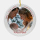 Crafted from durable ceramic, this custom photo Christmas ornament is a wonderful addition to any tree and a perfect way to commemorate your growing family's joyous journey. It's an ideal new parent gift, baby's first Christmas ornament, or a special family keepsake that will be cherished for years to come.