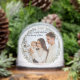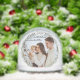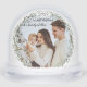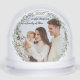 Celebrate baby’s first Christmas with this charming Snow globe, perfect for new parents! Features the elegant script "Our First Christmas as a Family of Three." This personalised Christmas gift is a beautiful keepsake to cherish for years to come. a light green wreath frames the photo of your little family.