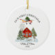 Soar into the season with this whimsical vintage style Aviation themed Christmas ornament! Design features a classic Cessna airplane flying in the sky, proudly hauling a fully decorated Christmas tree strapped atop its wings. Below, a house surrounded by snow covered pine trees and a sled, while “OUR FIRST CHRISTMAS” shines retro lettering above the cute scene.