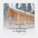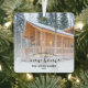 Commemorate your first Christmas in your new home with this beautiful modern keepsake ornament. The black text reads "First Christmas in our new home," with the words "new home" in elegant handwriting script with flourishes before and after. Replace the sample image with a photo of your new house and add your family's last name. A white gradient filter helps make the text pop.