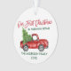 Modern Brush Script Our First Christmas in our New Home Ornament includes Watercolor Vintage Red Truck with Christmas Tree - Photo Back