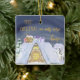 First Christmas in new home holiday ornament - which you can edit for single, couples and families and personalise with the year and your new address. Fun design with cosy house rooftop against the midnight sky with santa footprints in the snow and some gifts ready to come down the chimney.