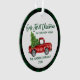 Modern Brush Script Our First Christmas in our New Home Ornament includes Watercolor Vintage Red Truck with Christmas Tree. Green Buffalo Plaid.