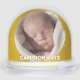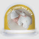 Snow globe for baby's first Christmas. Gold colour background with trendy, brushstroke photo templates on both sides. Include "first Christmas" text curved over the first image, along with the year date. On the other side, include the chid's name. A perfect little family keepsake that works for a new son or daughter.