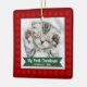 “My First Christmas.” Celebrate your new pet’s arrival this past year! A red banner with your pet’s name and year in whimsical white typography overlays your kitten or puppy’s custom photo. A playful border of red paw prints against brick red surrounds it. Feel the warmth and joy of the holiday season whenever you display this simple, stylish and modern personalised photo keepsake ornament. Choice of ceramic, metal, glass or premium metal frame materials. Perfect for the newly proud pet parent(s)!