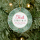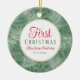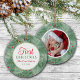 A lovely border of pines and evergreen branches in greens and reds surrounds your baby's picture. A "Baby's First Christmas" ceramic ornament with your newest family member's photo makes a great keepsake. Customise with your own photo, name, and birth date.