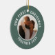 First Christmas photo modern minimal gift Unique personalised family holiday home decor sage green ornament design.
