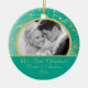 First Christmas Photo Ornament Gold Floral Teal